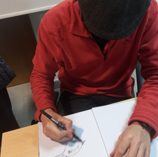Quase a terminar a sessão, Hugo Teixeira, teve a disponibilidade para responder a questões individualmente, tirar fotografias com alunos e teve ainda, a amabilidade de fazer um pequeno desenho e autografar os seus livros a quem adquiriu um exemplar.